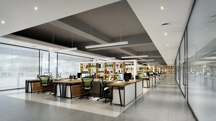 2. 光線與通風(fēng):良好的光線和空氣流通是提高生產(chǎn)力和創(chuàng)造力所必需的。在設(shè)計(jì)中應(yīng)考慮自然光線的引入以及通風(fēng)系統(tǒng)的優(yōu)化,以確保室內(nèi)空氣質(zhì)量和減少疲勞感。